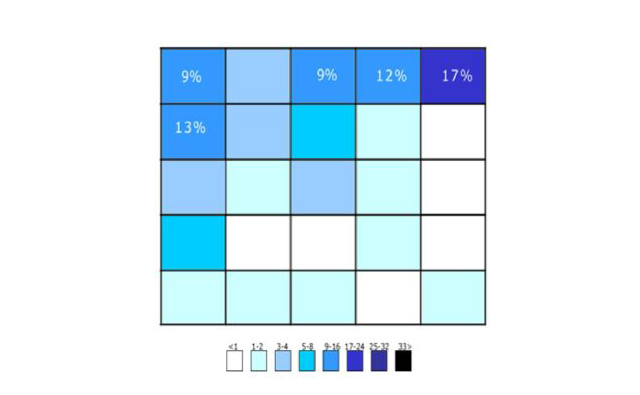 瀏覽見面的用戶當(dāng)他不得不去搜索搜索框時(shí),這并不好,因?yàn)樗伙@眼,也不容易識(shí)別。下面的圖表取自a . Dawn Shaikh和Keisi Lenz的一項(xiàng)研究:在對(duì)142名參與者的調(diào)查中顯示了網(wǎng)站搜索表單的預(yù)期位置。研究發(fā)現(xiàn),對(duì)大多數(shù)用戶來(lái)說(shuō),最方便的地方是網(wǎng)站頁(yè)面的左上方或右上角。