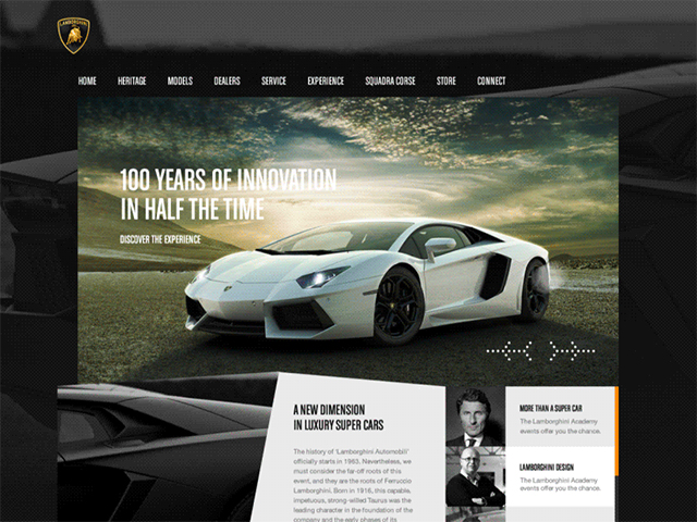 蘭博基尼是世界上最昂貴的汽車之一,也是世界上最好的跑車之一。網(wǎng)站必須達(dá)到這個水平,它確實做到了。就像蘭博基尼一樣,這個網(wǎng)站的迷人視頻也吸引了人們的眼球。雖然它有很多不同之處,但它仍然保持著簡單的導(dǎo)航工具,因此,是最好的汽車網(wǎng)頁設(shè)計。